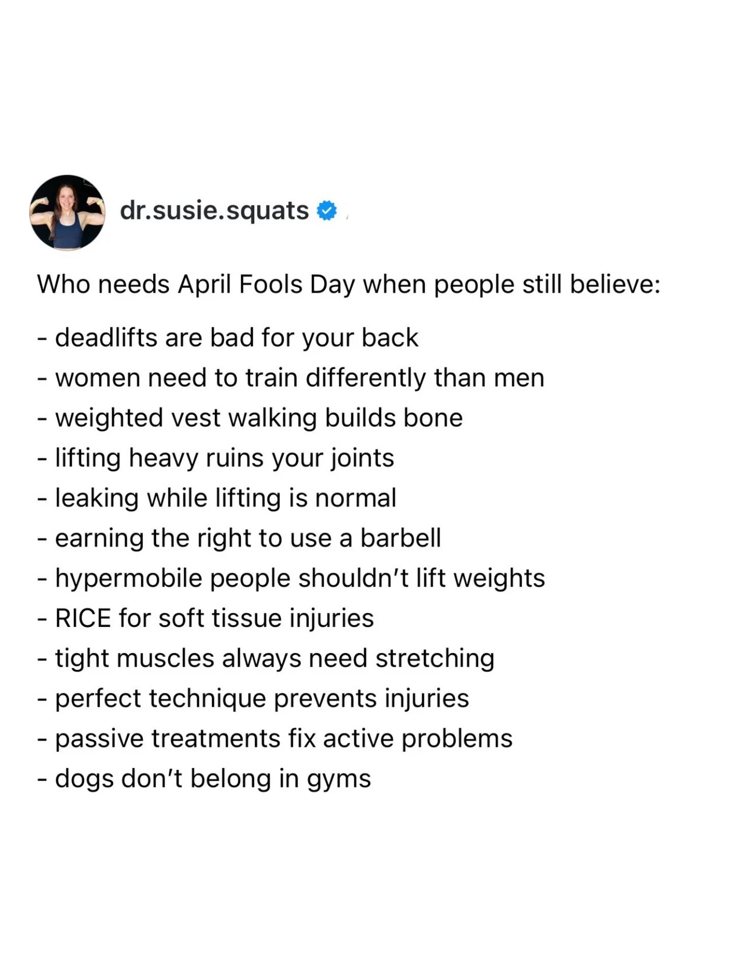 Hey there! I’m Dr. Susie, and I’m here to give you a gimmick-free, no-nonsense approach to rehab & strength training, formulated by Doctors of Physical Therapy to keep you out of the medical system and inside the gym.
